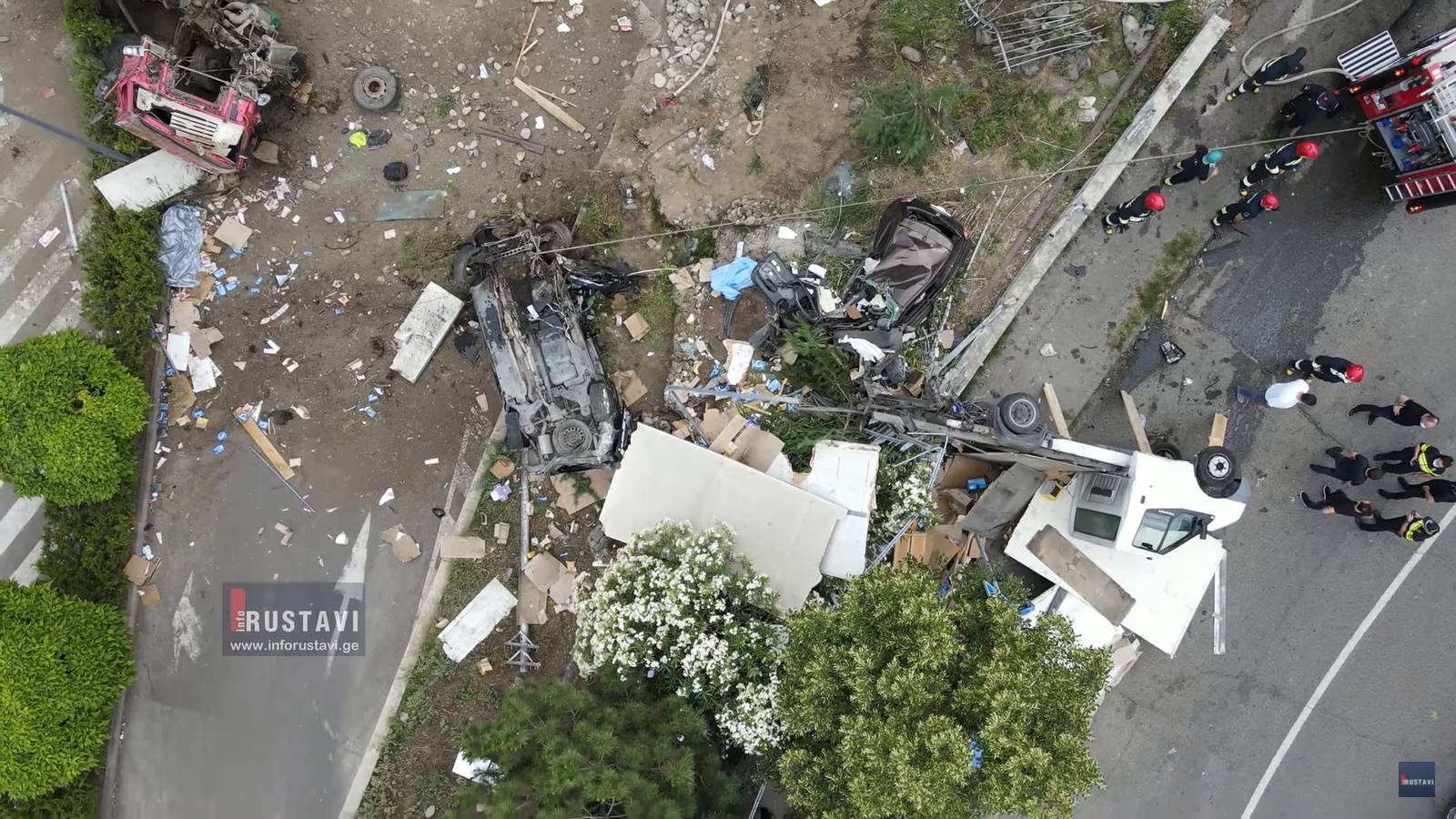 Вчера в Тбилиси на Крцанисской улице грузовик без тормозов полетел с уклона, снеся сначала минивен на встречке, потом еще 4 машины стоящие на паркинге около Нью Хоспитал, и упал во двор этой клиники.