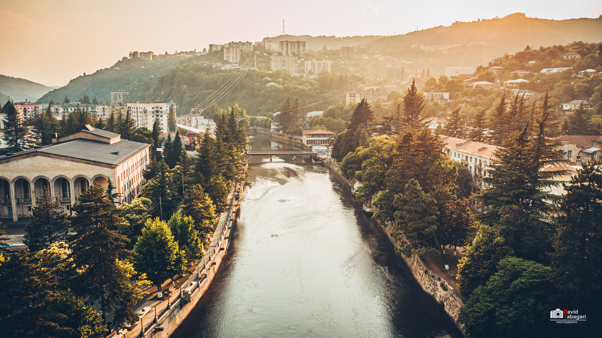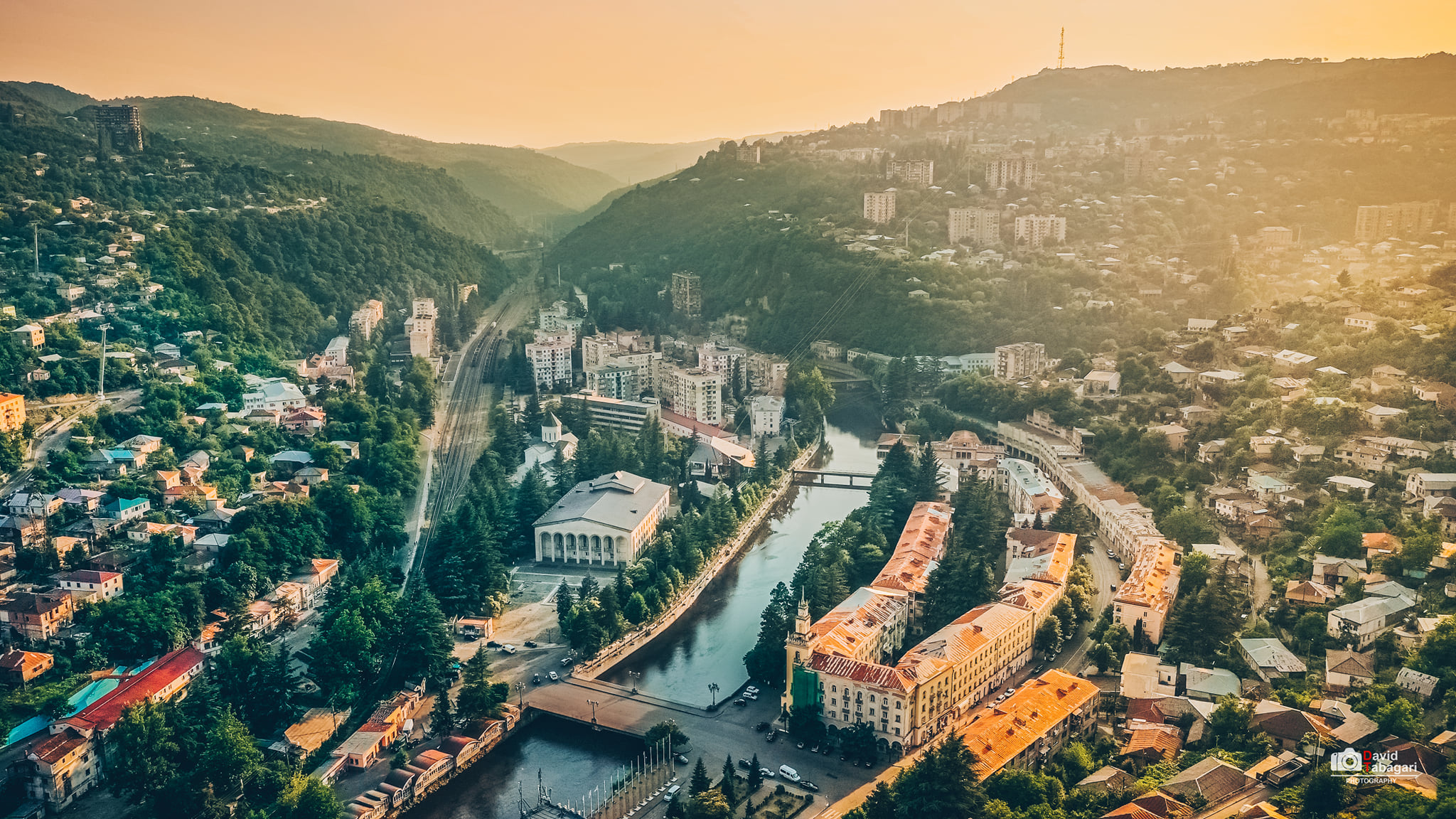 Город вытянулся длинной лентой по ущелью реки Квирила.
