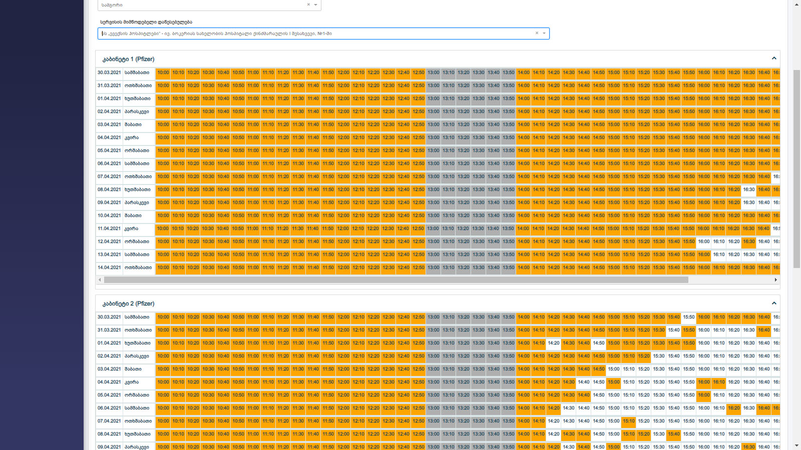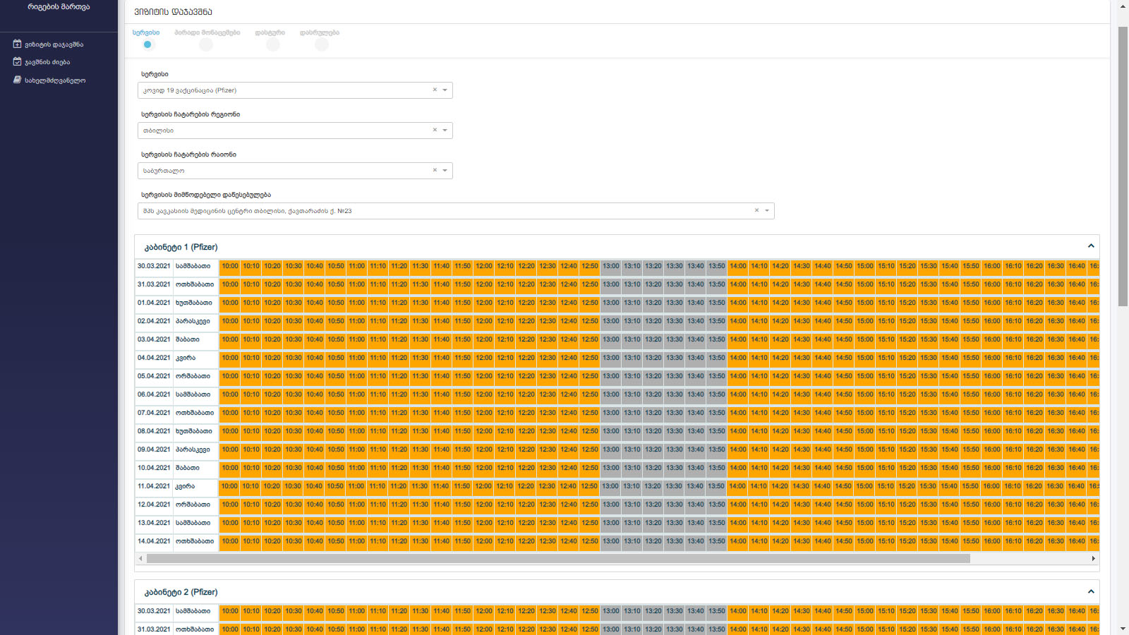 Забронировать кабинет для вацинации можно на сайте Минздрава Грузии https://booking.moh.gov.ge/