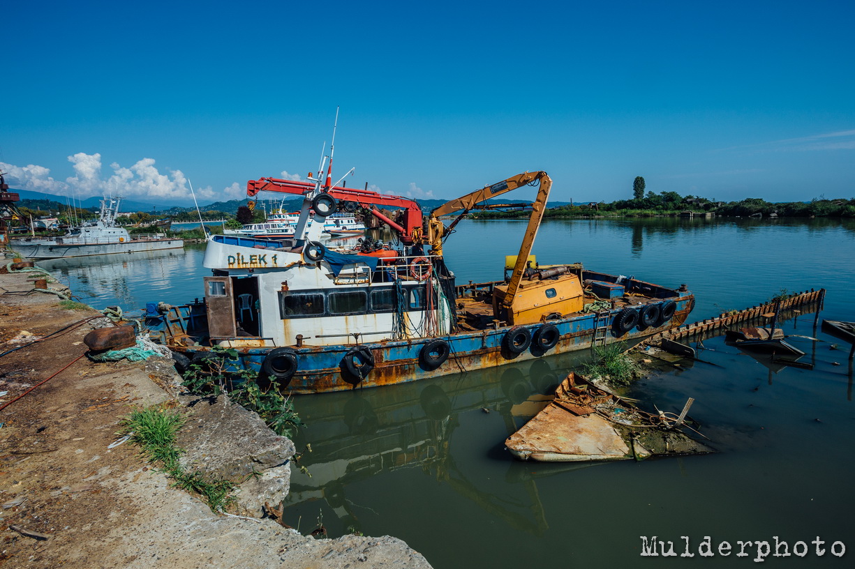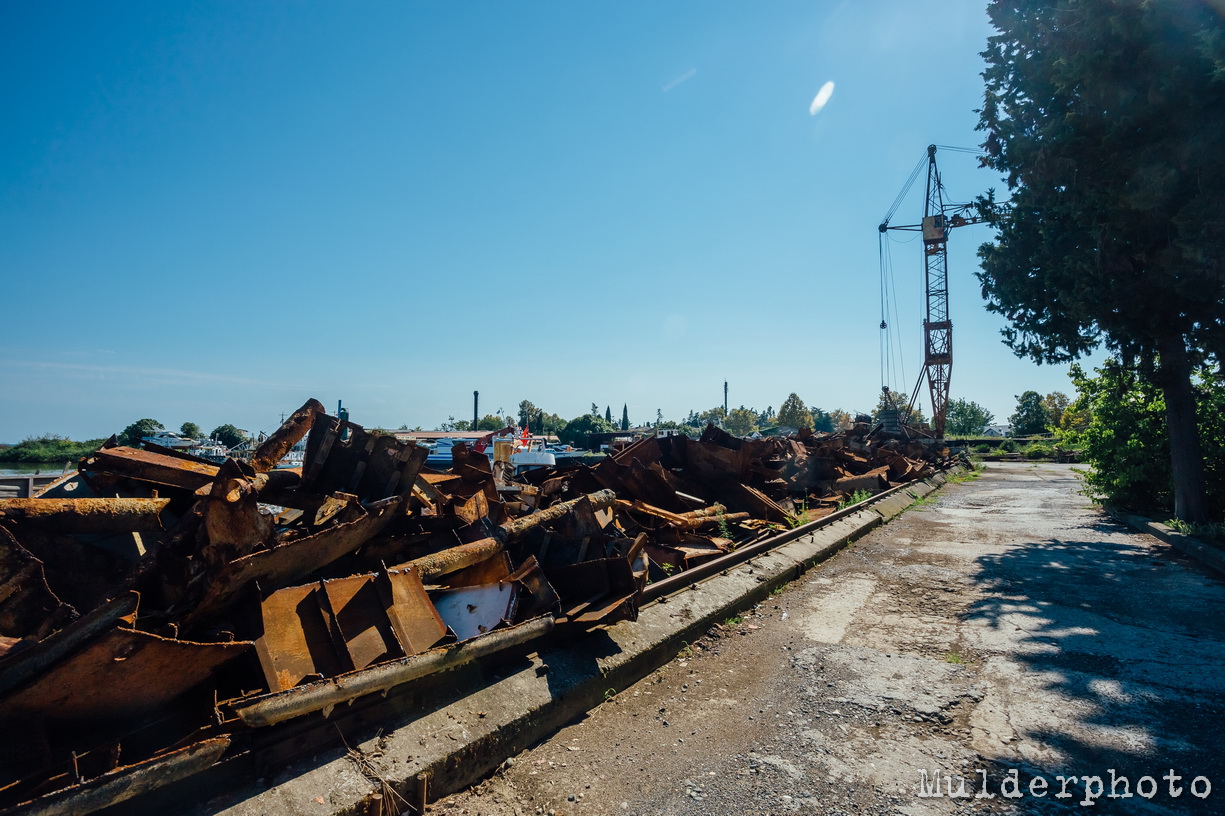 Это остатки затонувших в Сухумской бухте кораблей, их подняли в последнее время и отправят в лом. Кажется и Эмбу разобрали